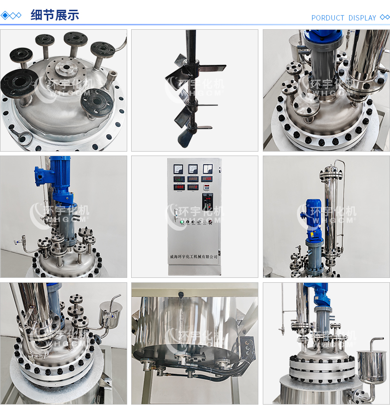 其他附件 如果用戶在釜蓋、釜體開口、內(nèi)部結(jié)構(gòu)、壓力高低、攪拌槳葉、及增加其他輔助裝置(如冷凝回流裝置、冷凝器、恒壓加料罐、接收裝置)等有特殊要求,可完全按用戶的要求加工制造