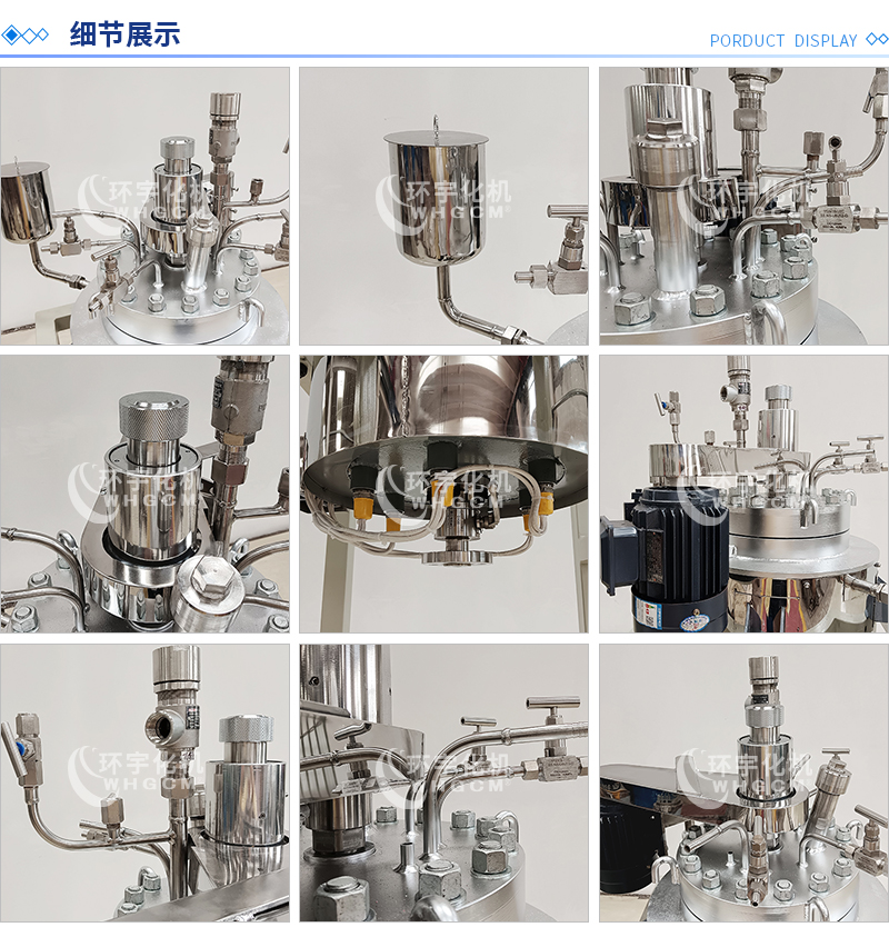 其他附件 如果用戶在釜蓋、釜體開口、內(nèi)部結(jié)構(gòu)、壓力高低、攪拌槳葉、及增加其他輔助裝置(如冷凝回流裝置、冷凝器、恒壓加料罐、接收裝置)等有特殊要求,可完全按用戶的要求加工制造